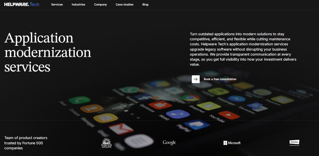 Helpware Tech combines application modernization with operational and support services, making them relevant for companies modernizing while maintaining active systems.