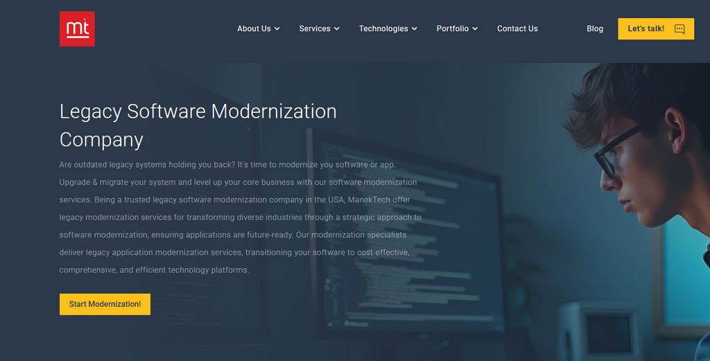 ManekTech provides broad system modernization services across industries, focusing on gradual system upgrades and UI refreshes.