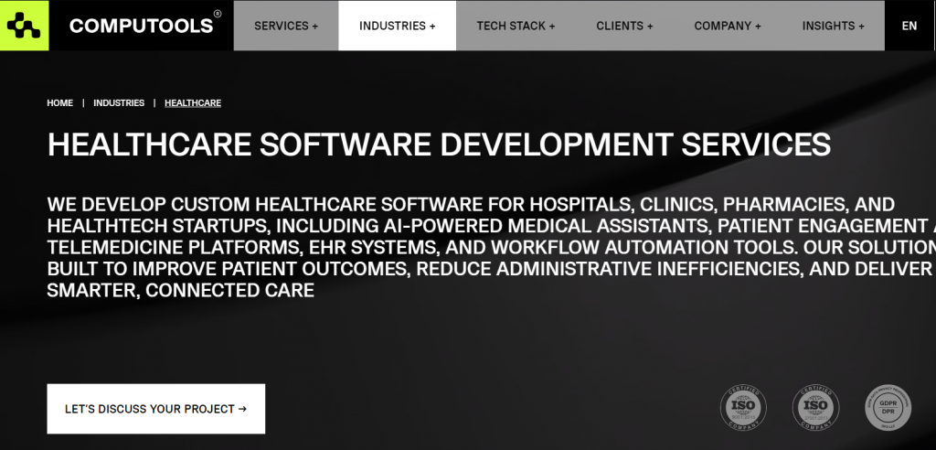 Computools focuses on custom healthcare software with a strong emphasis on automation, AI, and digital transformation for hospitals and clinics. The company develops Electronic Health Records software, telemedicine and virtual care platforms, Remote Patient Monitoring systems and other solutions for hospitals, clinics, pharmacies, and healthtech startups.