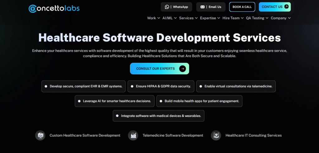 Strong focus on compliance, security, and innovative features makes Concetto Labs a reliable choice for healthcare organizations aiming for operational excellence.