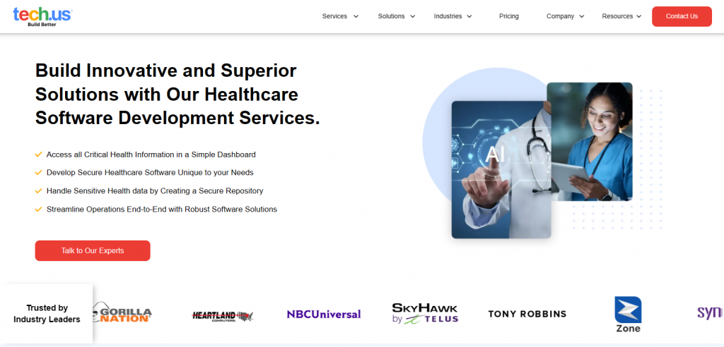 The company delivers reliable, scalable software for both healthcare enterprises and emerging digital health startups. Tech US has experience in developing custom hospital management software, telehealth platforms, and patient engagement solutions for clinics and hospitals, medical laboratories, healthcare centres, pharmaceutical companies, government health departments, and other clients.
