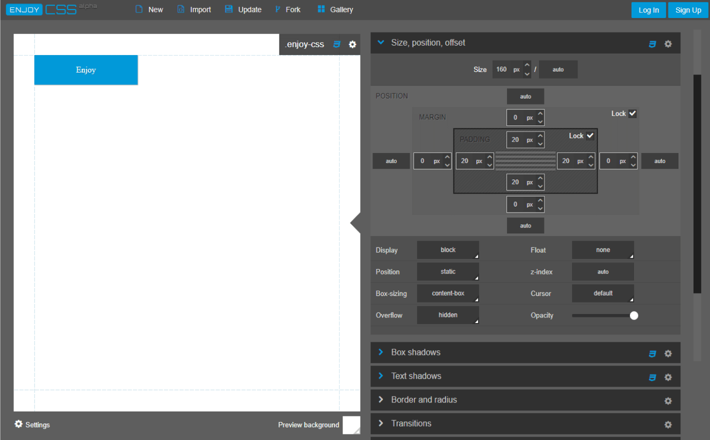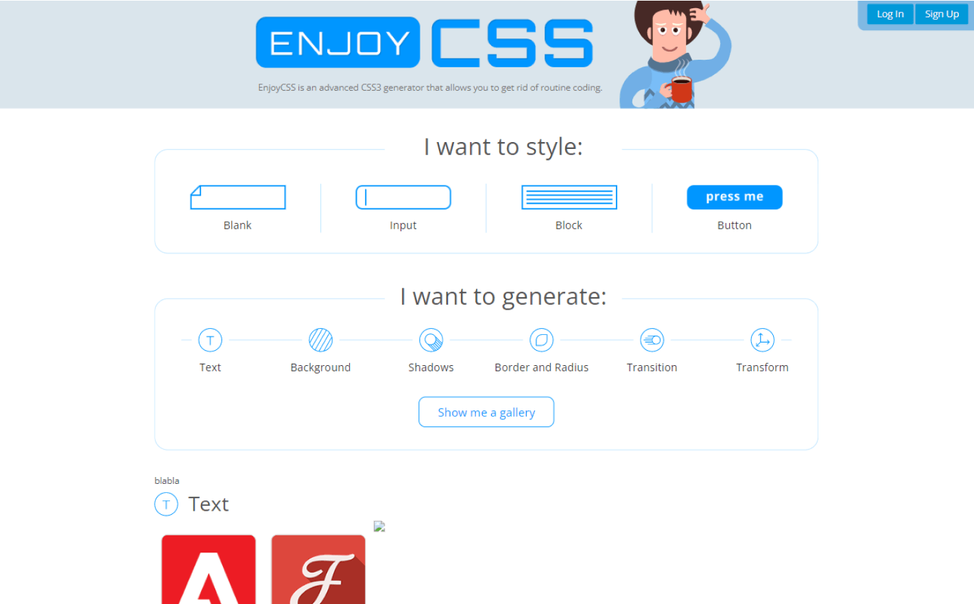 EnjoyCSS is a feature-rich generator of CSS code that allows creating text fields, buttons, and other page elements without having to write the code yourself.